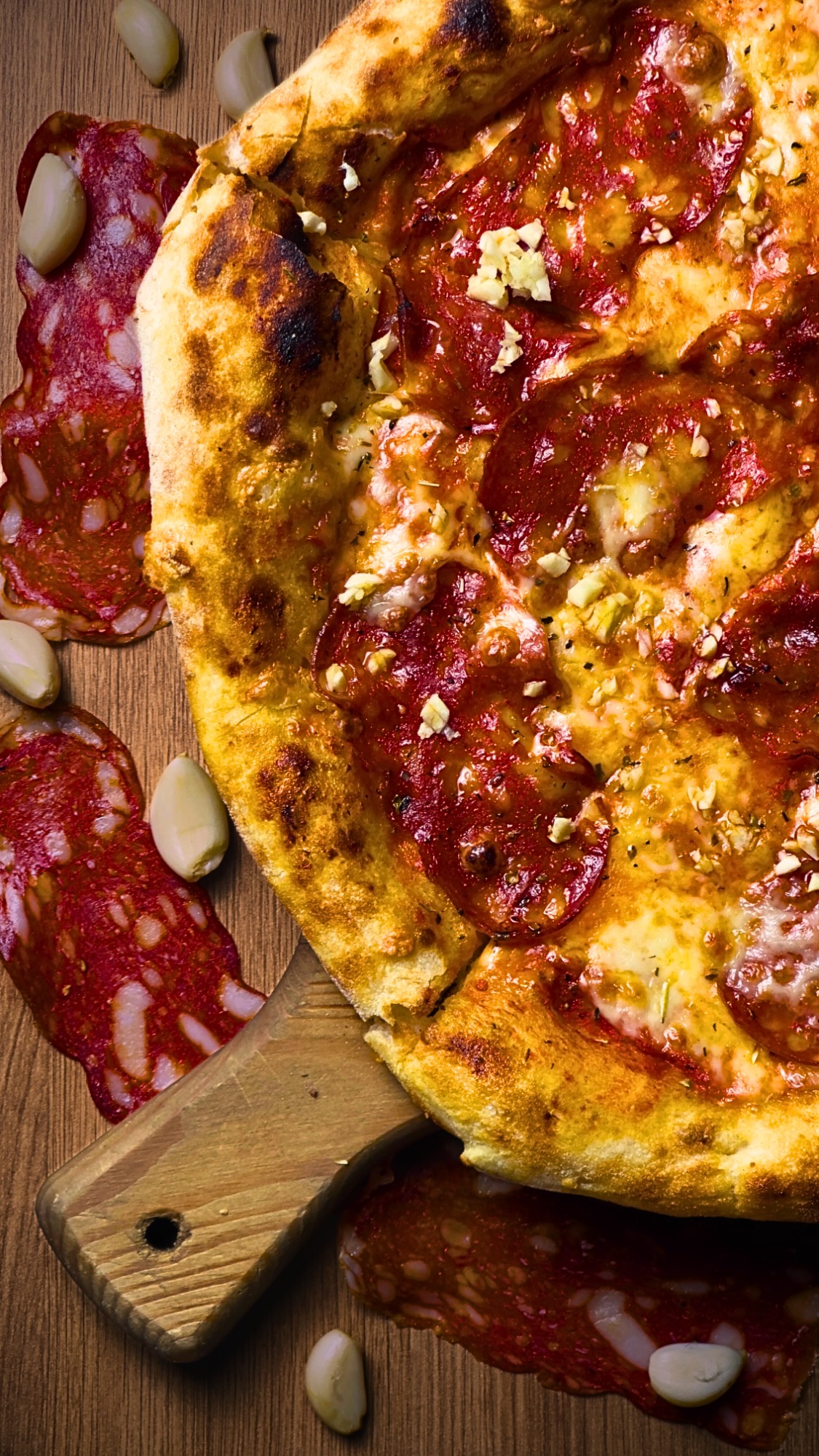 sos pomidorowy, ser fior di latte, salami piccante, czosnek, mix przypraw